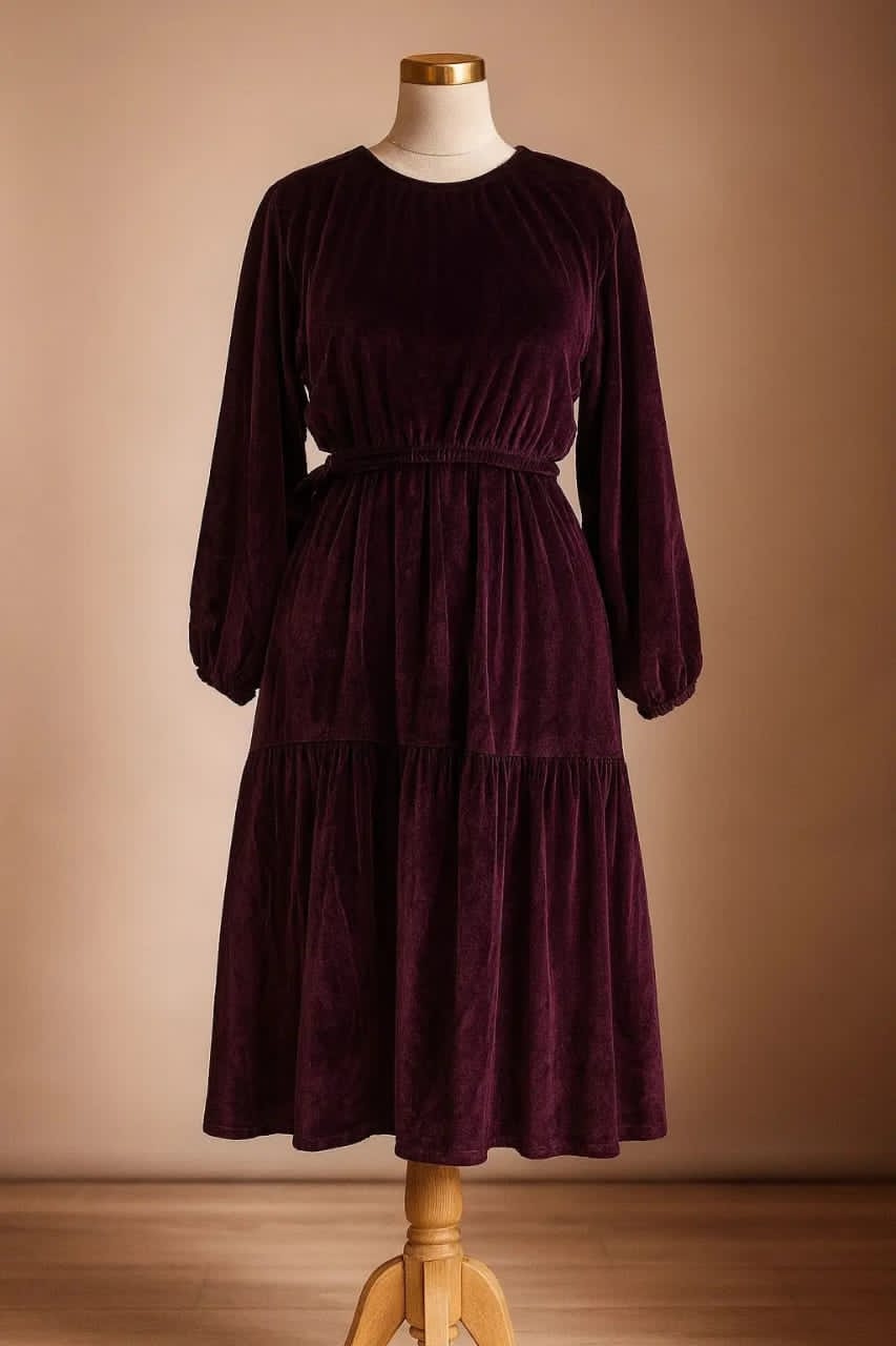 پیراهن و بلوز کراپ جنس پارچه مخمل کش ترک. فری سایز ۴۲ تا ۴۸ قد پیراهن ۱۱۲ و قد کراپ ۴۲ رنگ بادمجونی